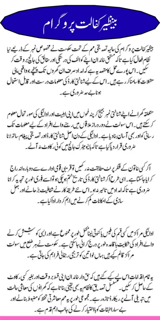 Having the correct documents ready can prevent delays and ensure smooth verification at both the SMS and portal stages. Beneficiaries should keep their CNIC valid and up-to-date with NADRA. Additionally, a mobile SIM registered under the beneficiary’s CNIC is essential for receiving verification messages.